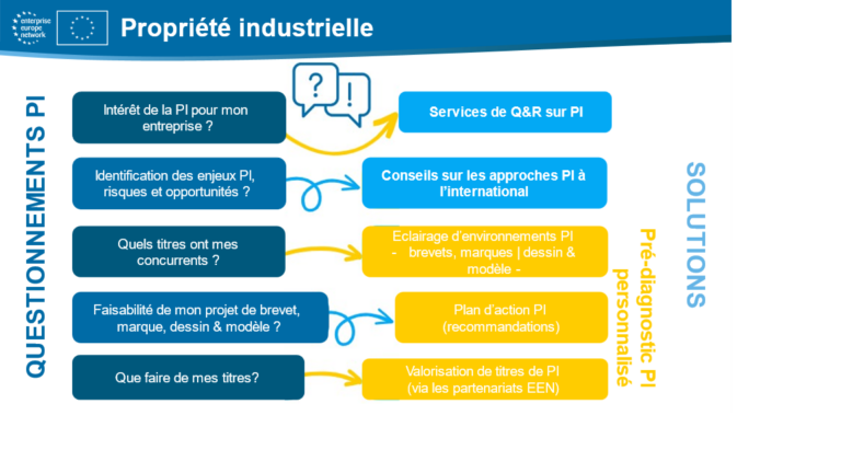 Le réseau EEN accompagne les entreprises européennes à travers leur parcours d’innovation et d’internationalisation. Les conseillers EEN peuvent répondre à vos questions et vous orientez pour vos stratégies de PI à l’international.
